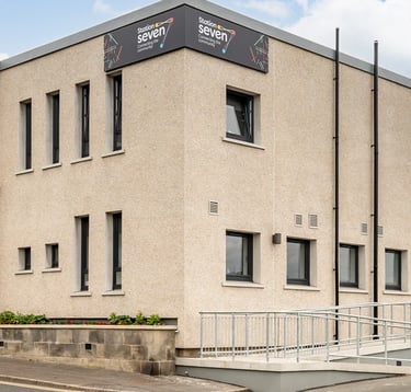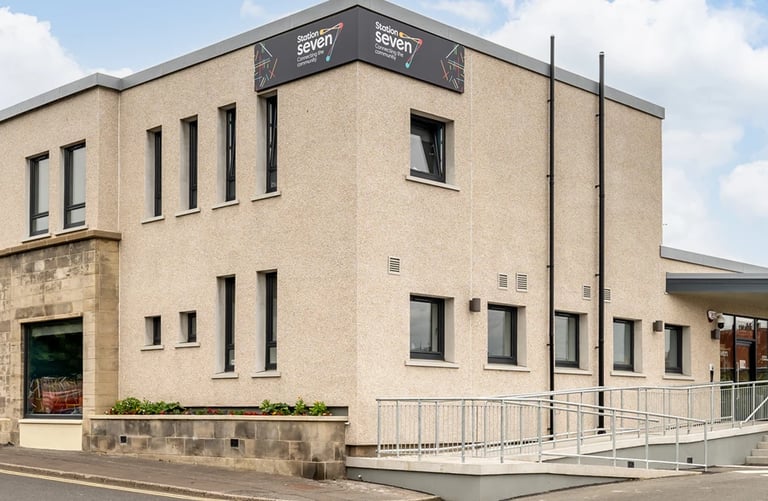 Once you arrive at Johnstone Rail Station, follow the High Street into Johnstone Town Centre. Turn left up Church Street (when you see Iceland) then take the last right. Station Seven is right on the corner.